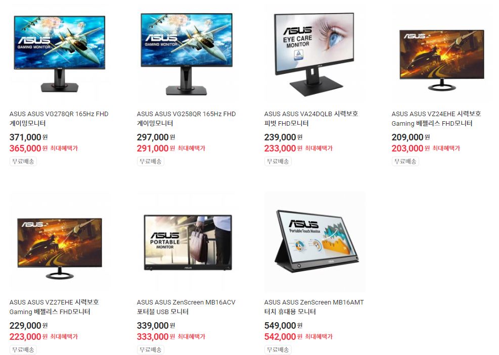 에이수스 다양한 제품을 할인 판매하네요.