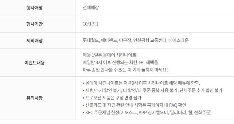 KFC 올데이 치킨나이트 정보 포스팅입니다.