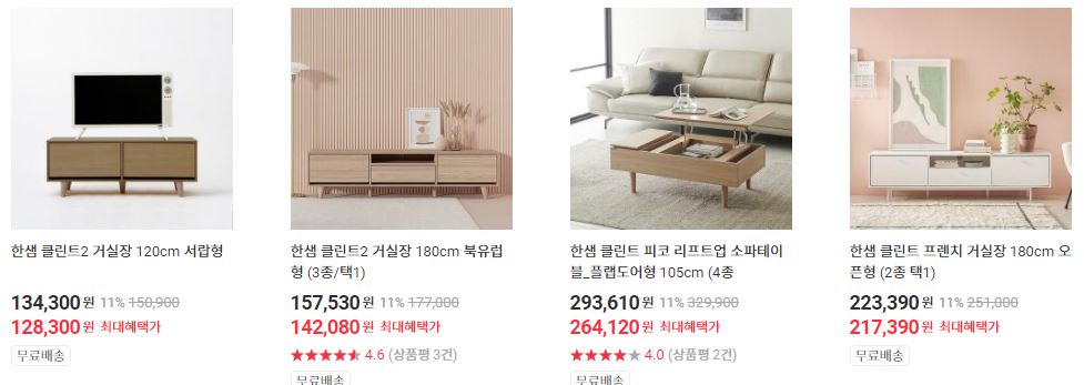 한샘 다양한 제품을 할인 판매하네요.