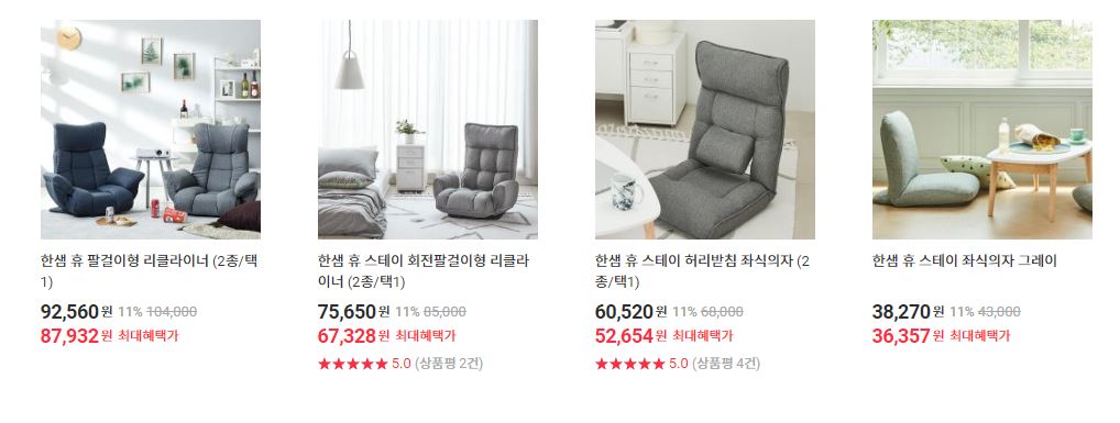 한샘 다양한 제품을 할인 판매하네요.