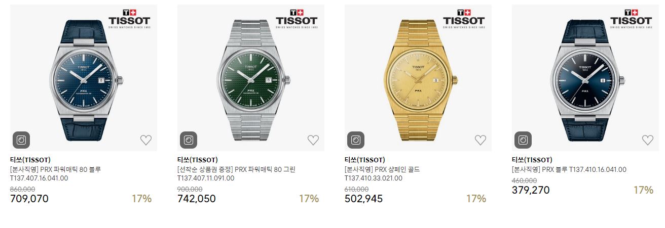 티쏘 모던 레트로 PRX 컬러대전 정보 [링크]
