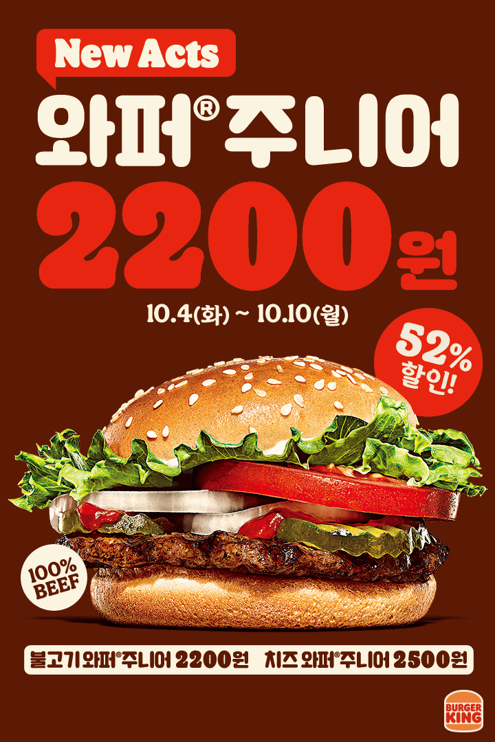 버거킹 와퍼주니어 52% 할인 정보 포스팅입니다.