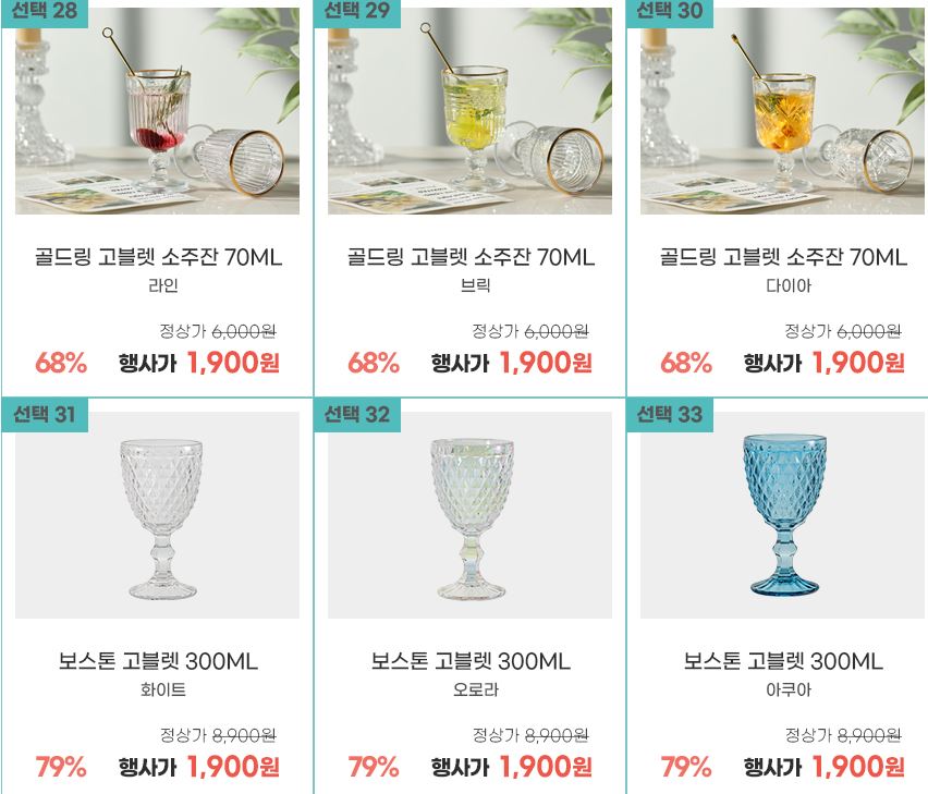 할인 품목 : 맥주컵, 소주잔 등