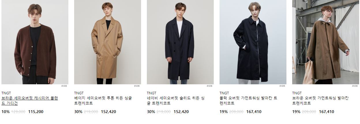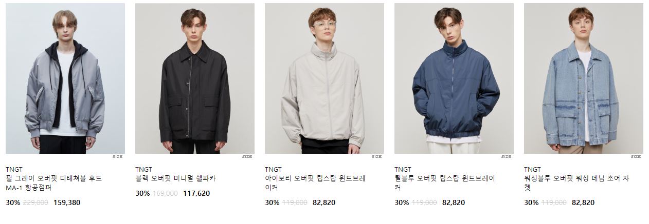 할인 품목 : 자켓, 코트, 티셔츠 등