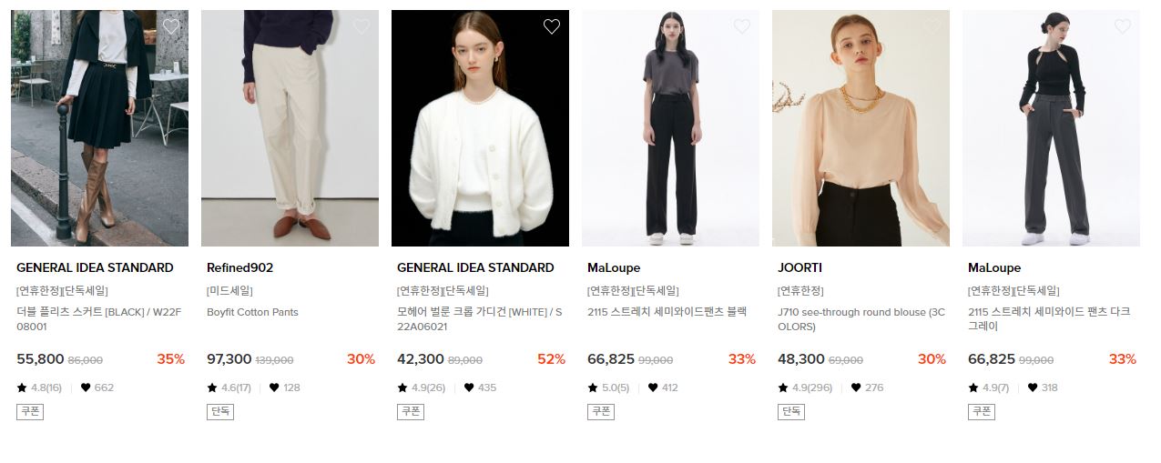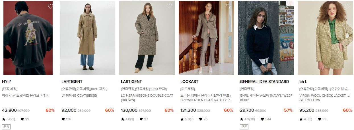 할인 품목 : 코트, 가디건, 니트 등