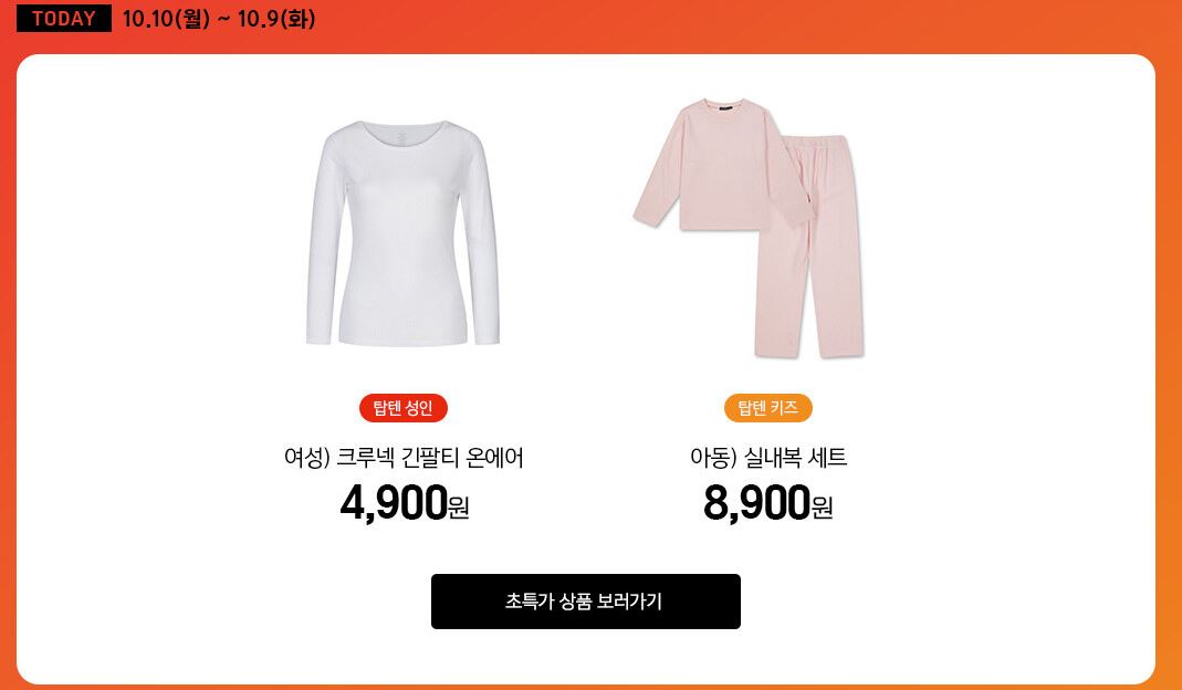탑텐 사이트에서 할인 이벤트를 진행하네요.