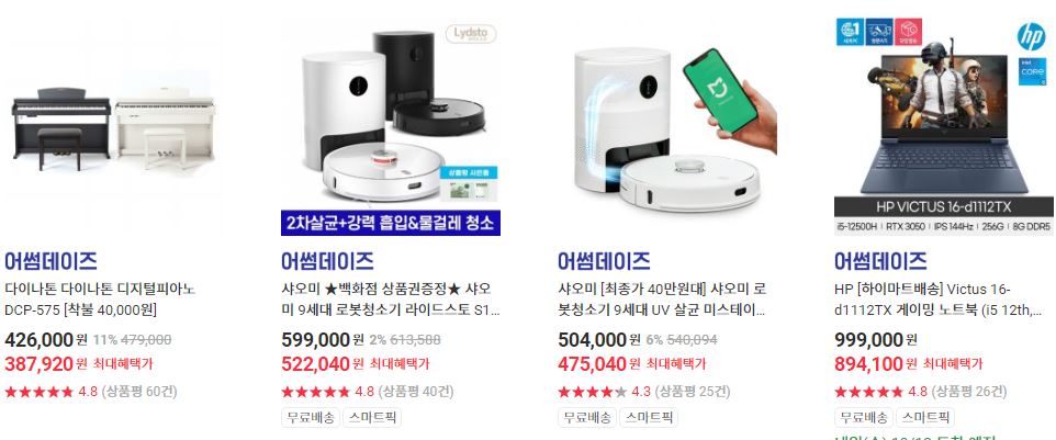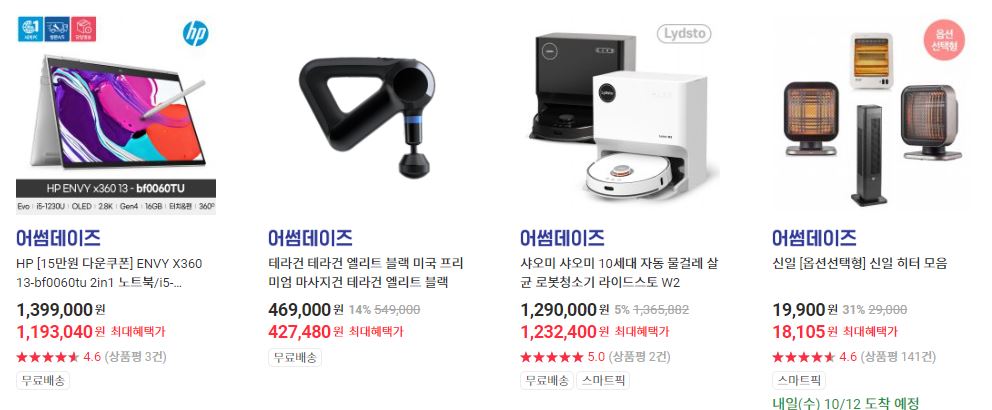 할인 품목 : 데스크탑, 로봇청소기, 전자레인지 등