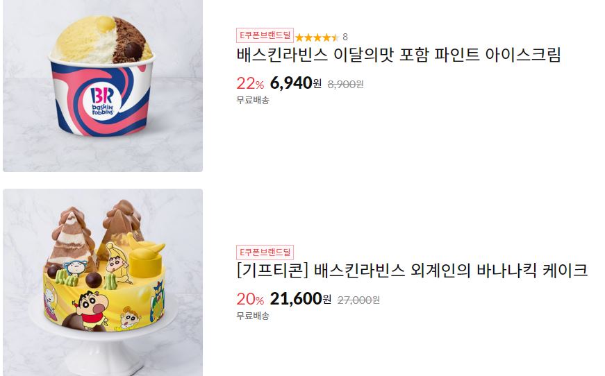 할인 브랜드 : 배스킨라빈스, 뚜레쥬르 등