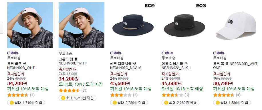 할인 품목 : 자켓, 티셔츠, 모자 등