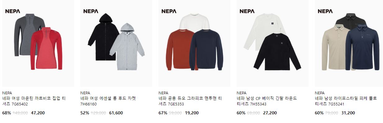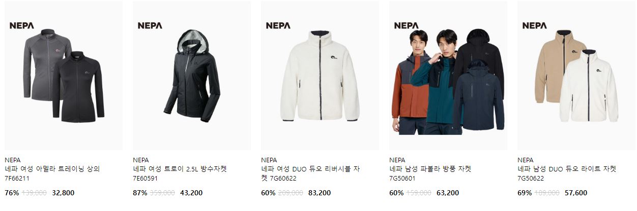 네파 다양한 제품을 할인 판매하네요.