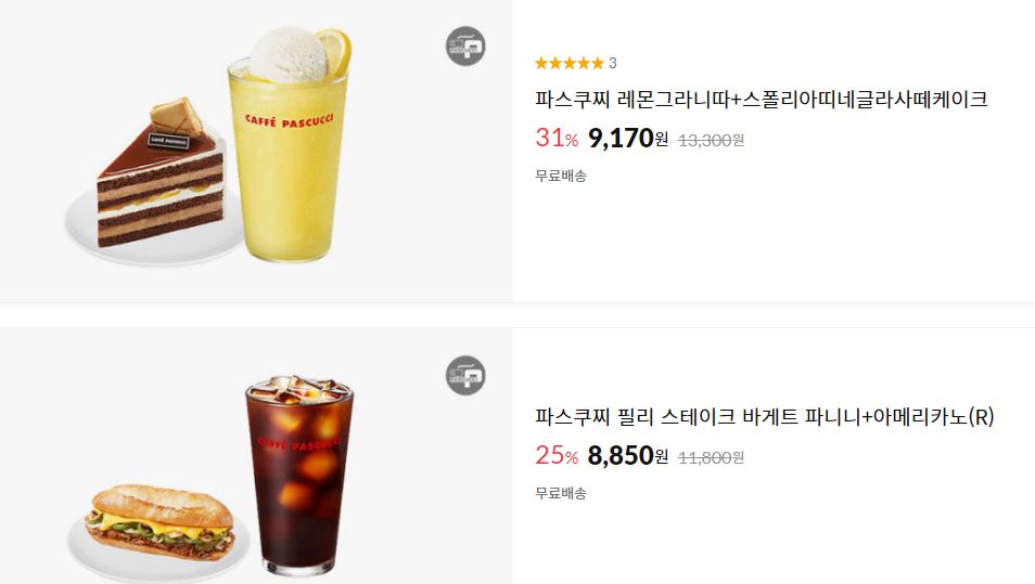 파스쿠찌 다양한 메뉴를 할인 판매하네요.