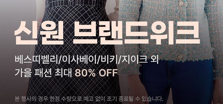 신원 브랜드 위크 최대 80% 세일 정보 [링크]