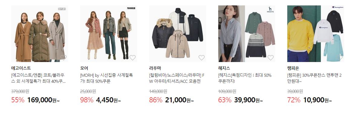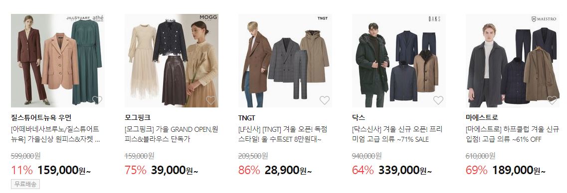 할인 품목 : 의류, 가방, 신발 등