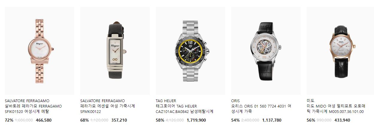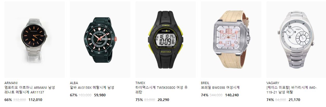 할인 품목 : 시계, 지갑, 운동화 등