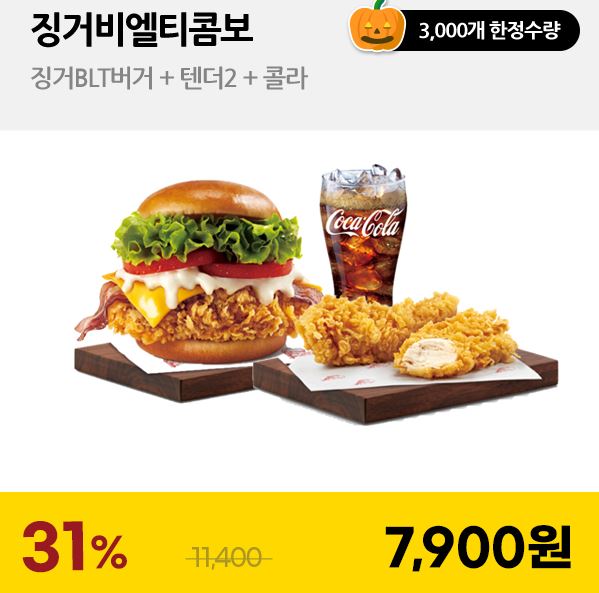 할인 메뉴 : 징거비엘티콤보, 타르트콤보 등