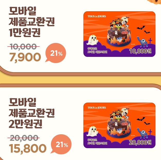 뚜레쥬르 모바일 제품교환권 21% 할인 정보 [링크]