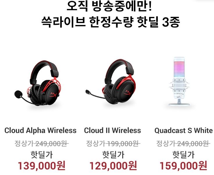 할인 품목 : 헤드셋, 마이크, 키보드 등