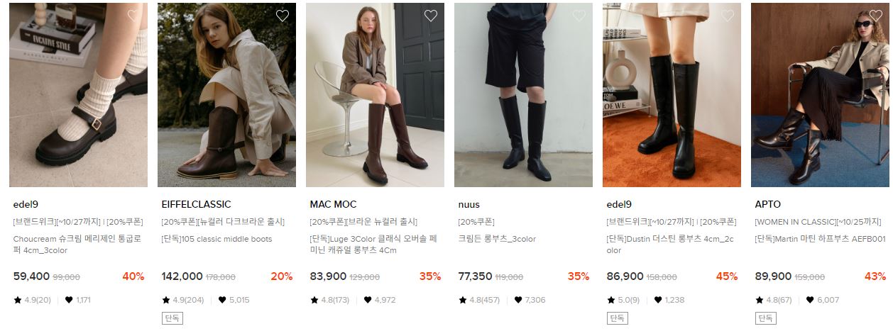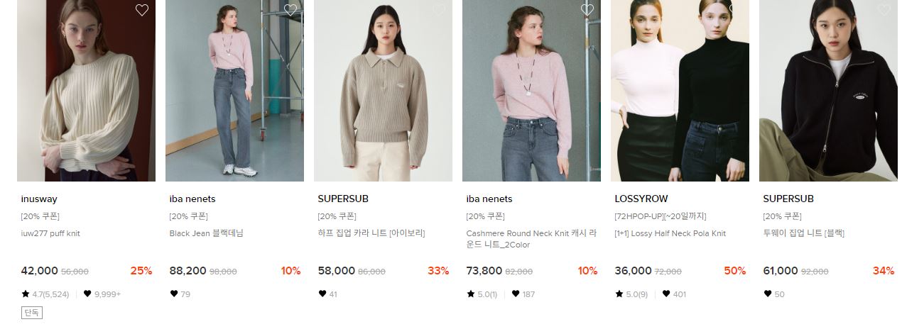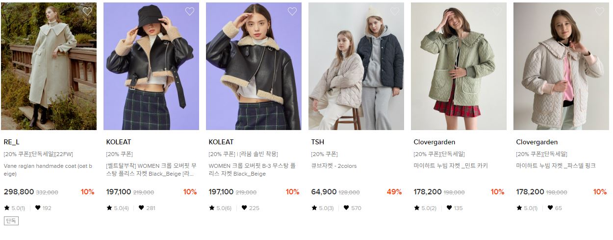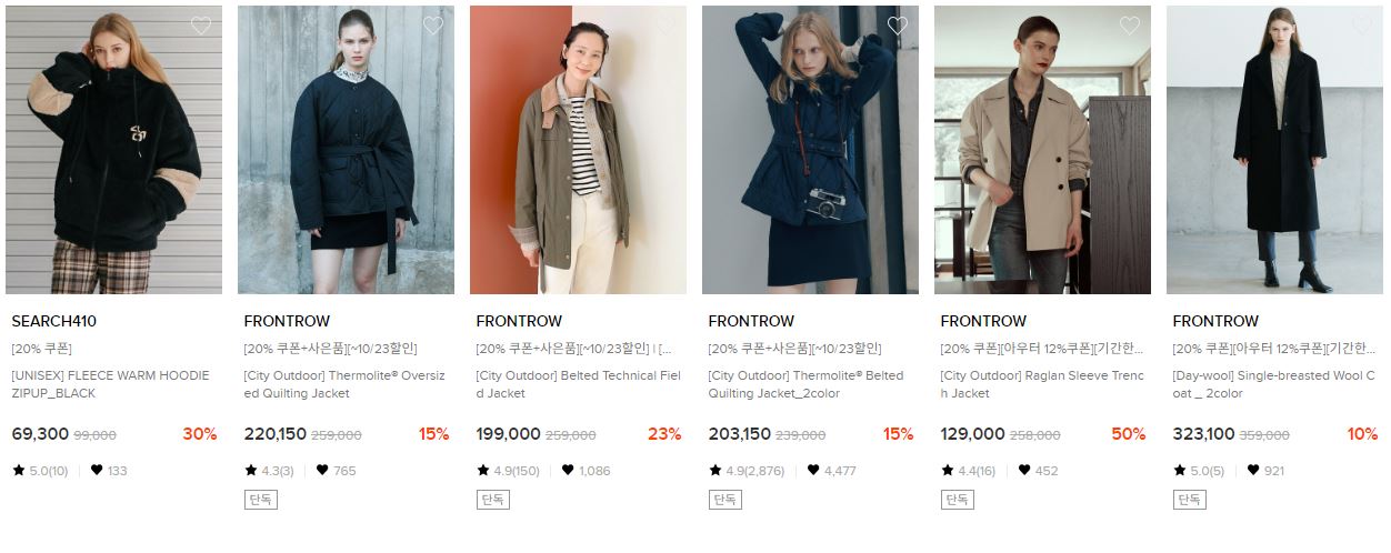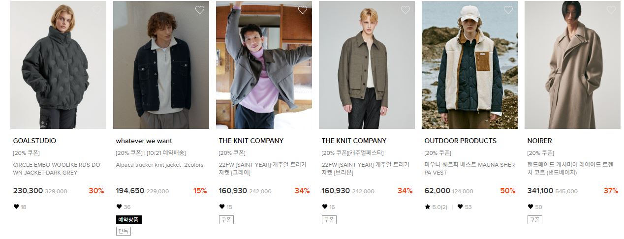 할인 품목 : 자켓, 코트, 티셔츠 등