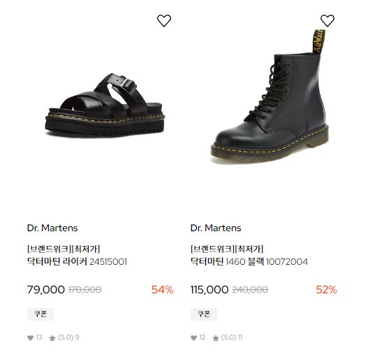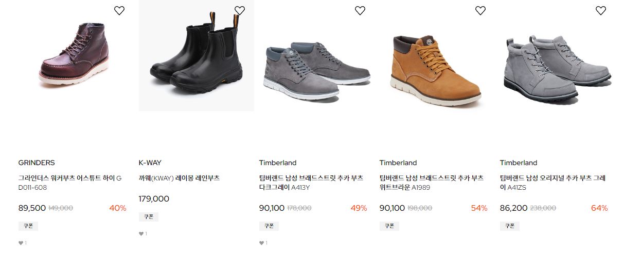 할인 품목 : 부츠, 운동화 등