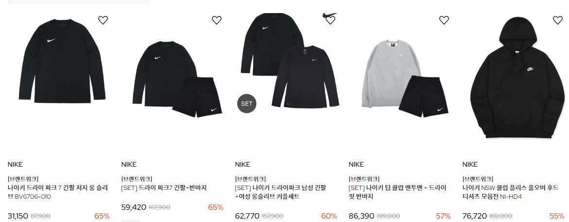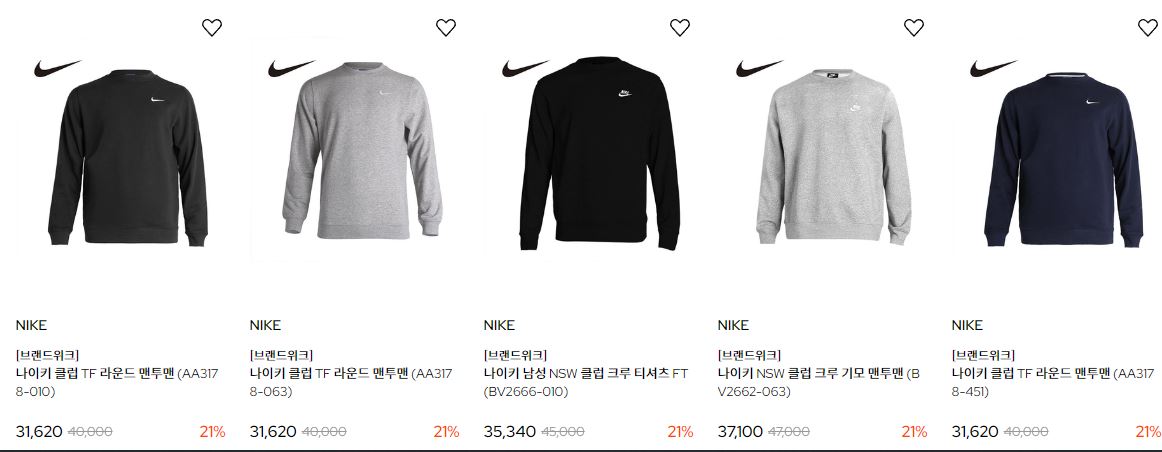 할인 품목 : 운동화, 맨투맨, 모자 등