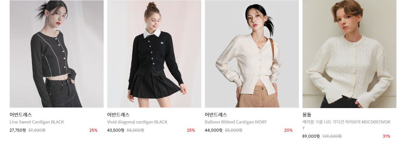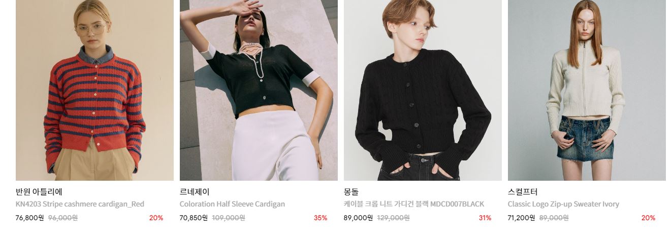 할인 품목 : 니트, 가디건, 모자 등