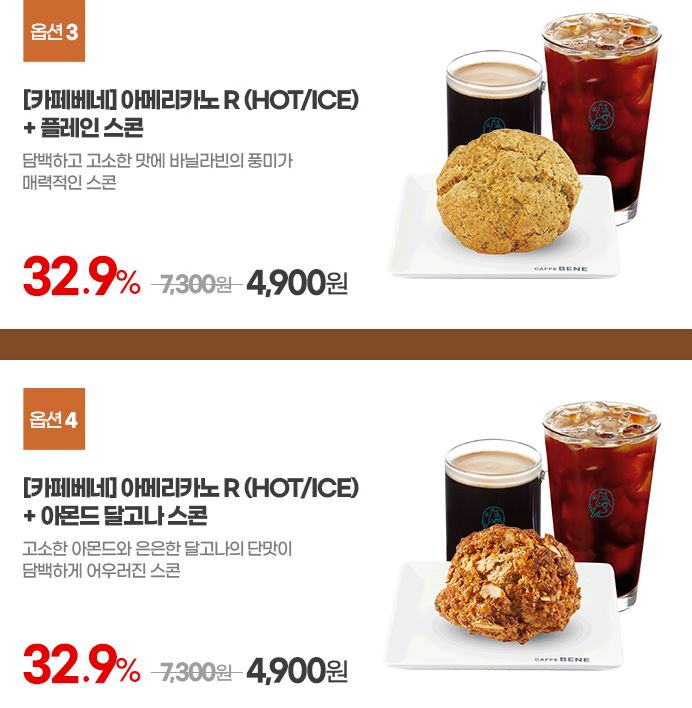 카페베네 다양한 메뉴를 할인 판매하네요.