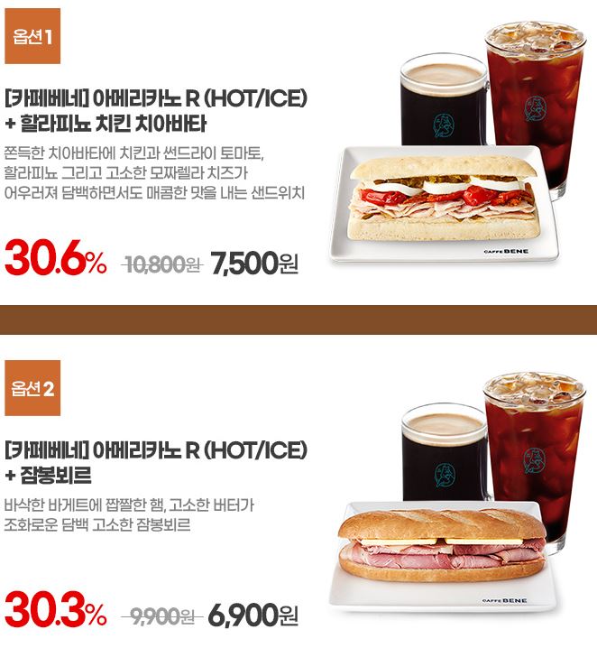 할인 품목 : 아메리카노, 할라피뇨 치킨 치아바타 등