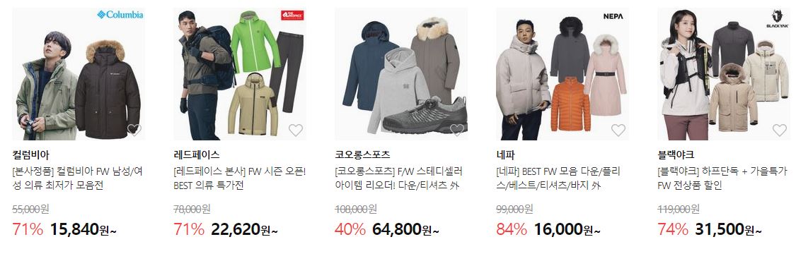 할인 품목 : 의류, 신발, 가방 등