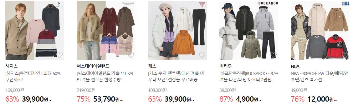 할인 품목 : 의류, 신발, 가방 등
