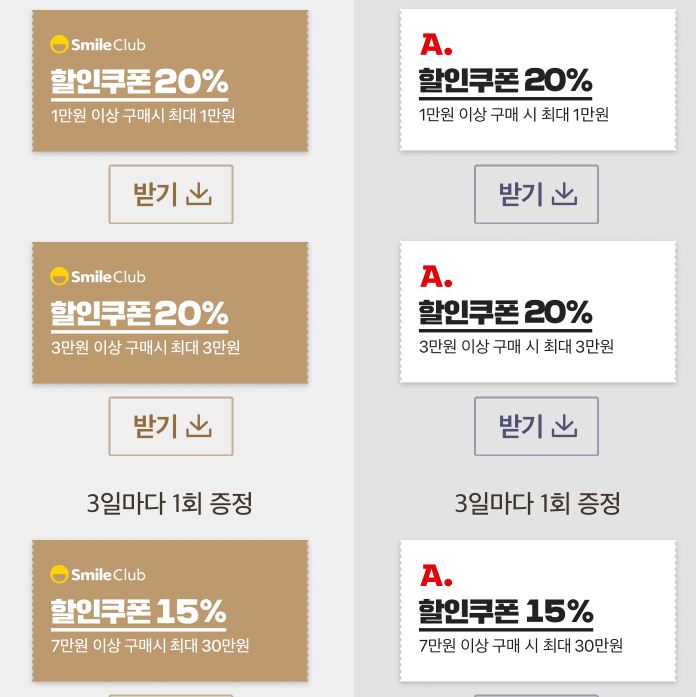 할인 품목 : 의류, 화장품, 가전 등