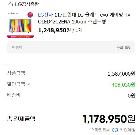 LG OLED42C2ENA를 할인 판매하네요.