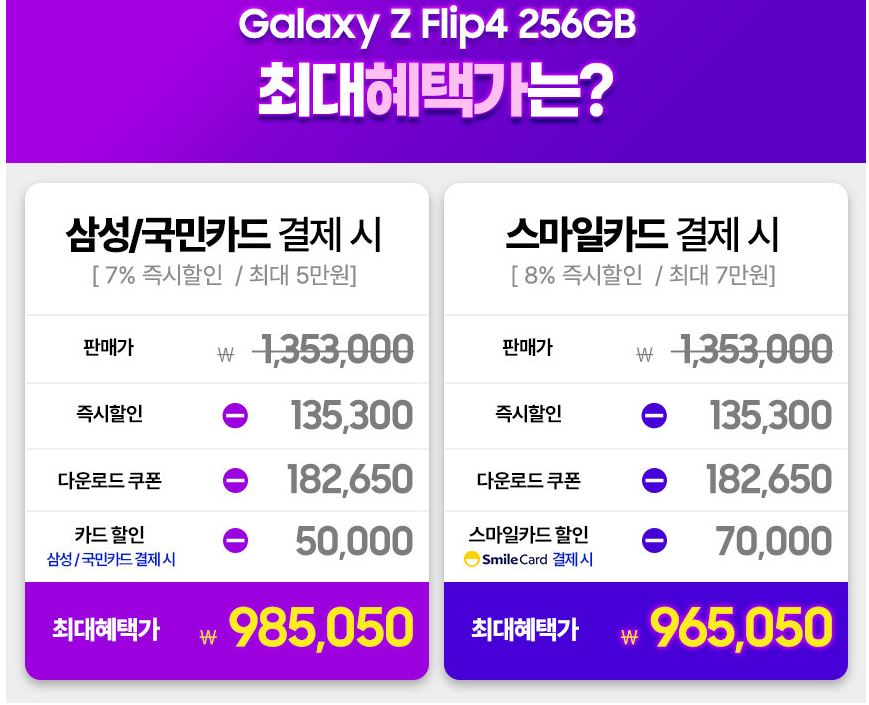 삼성 갤럭시 Z 플립4 256GB 최대 29% 할인 정보 [링크]