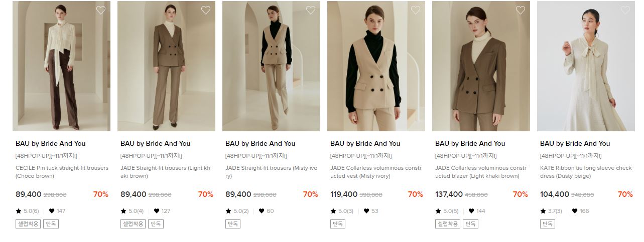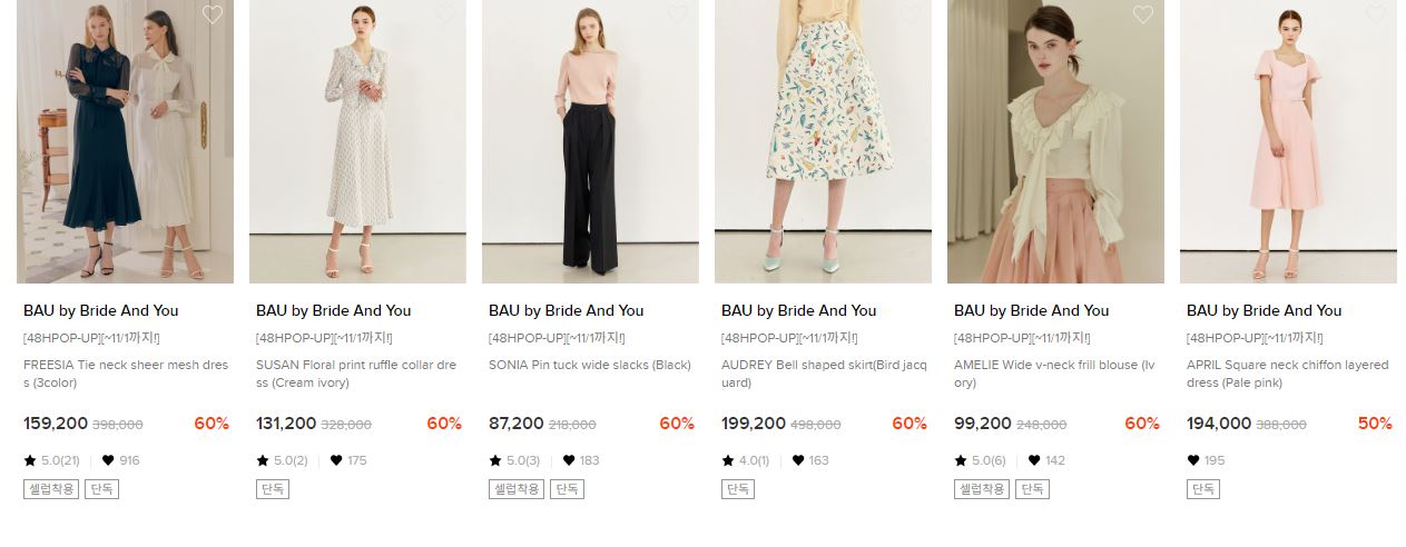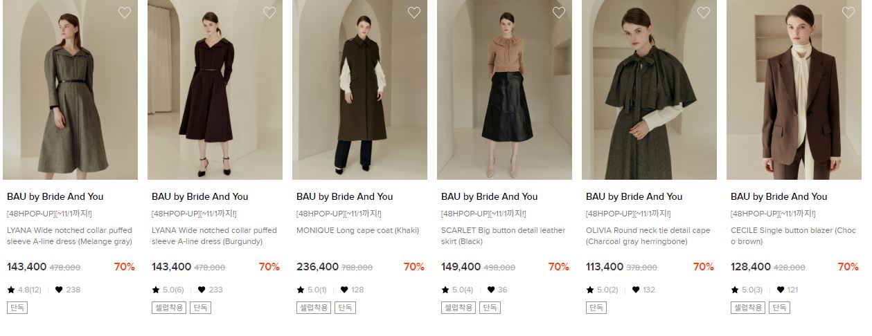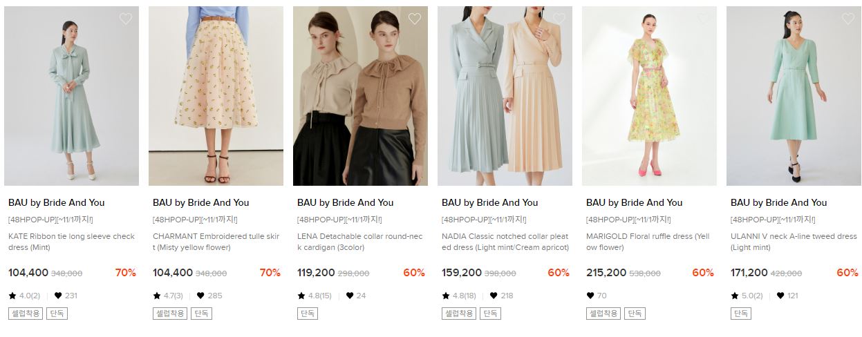 W컨셉 BAU BY BRIDE AND YOU 최대 70% 세일 정보 [링크]