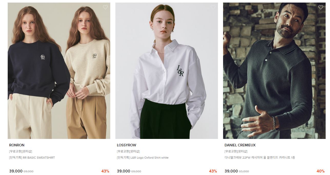W컨셉 사이트에서 할인 이벤트를 진행하네요.