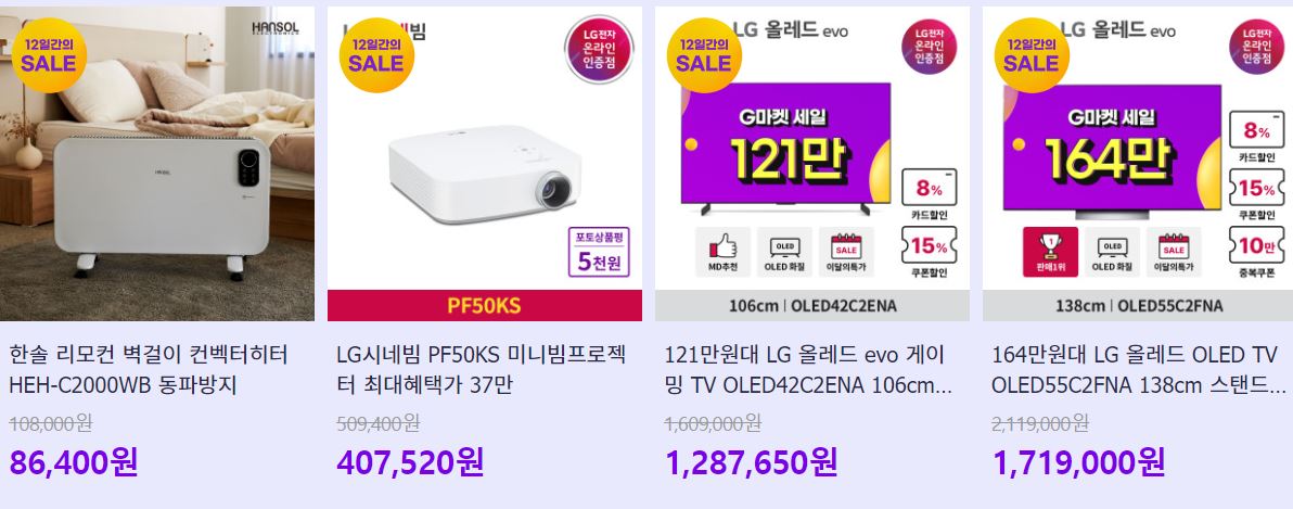 할인 품목 : 가전, 가구, 화장품 등