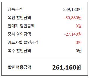 최대 할인가 261160원