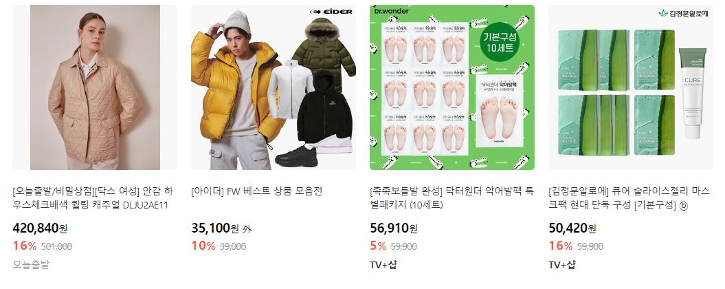 할인 품목 : 의류, 화장품, 러그 등