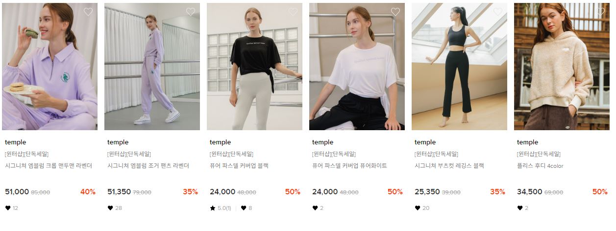 할인 품목 : 잠옷, 속옷, 티셔츠 등