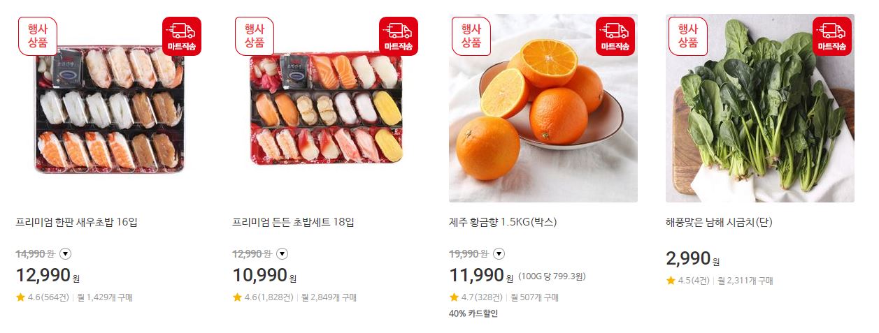 할인 품목 : 굴비, 초밥, 과일 등