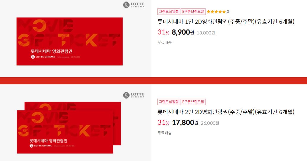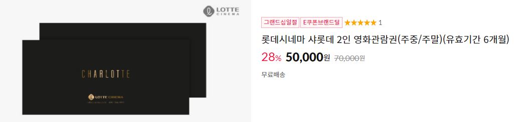 할인 품목 : 2인 패키지교환권, 영화관람권 등