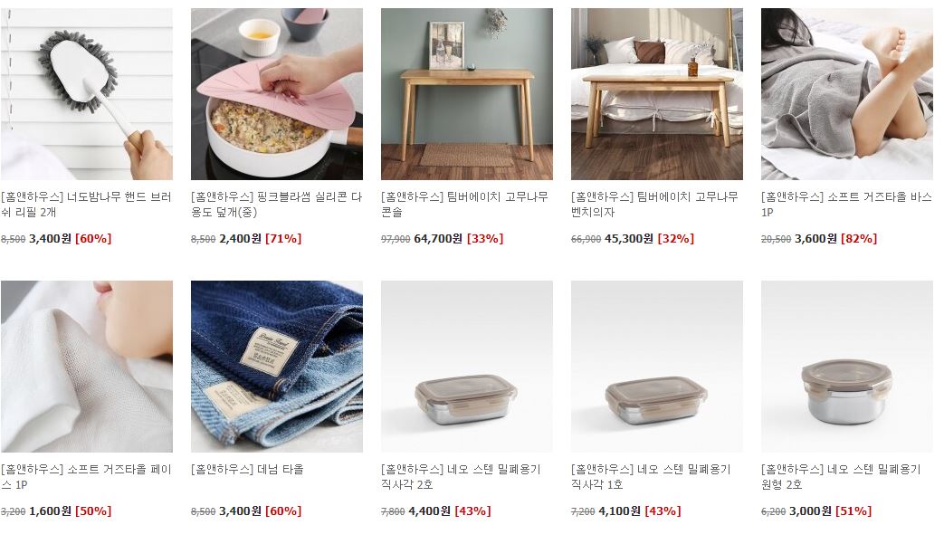 홈앤하우스 다양한 제품을 할인 판매하네요.