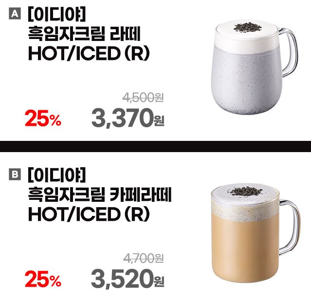 이디야 신제품 25% 할인 정보 [링크]