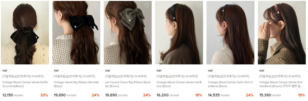 할인 품목 : 헤어밴드, 목걸이, 머플러 등
