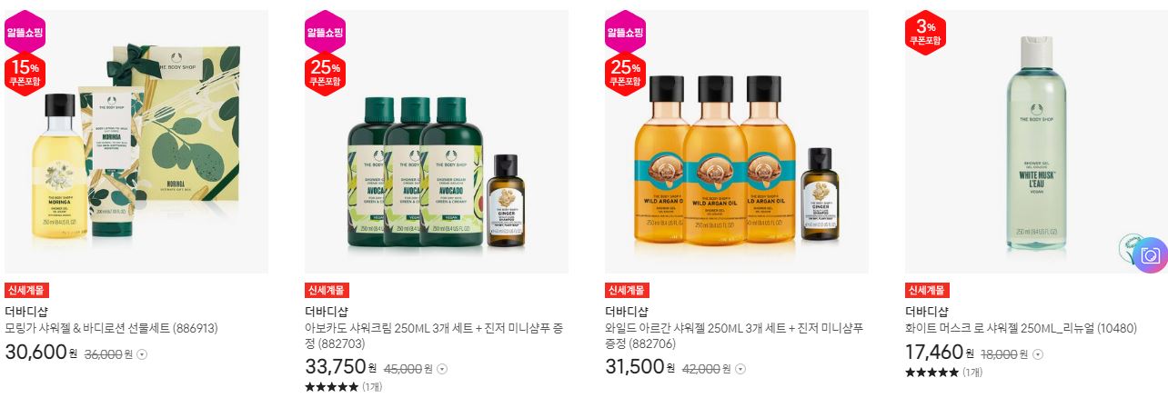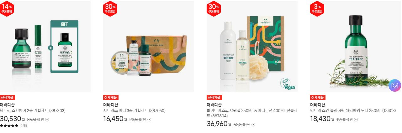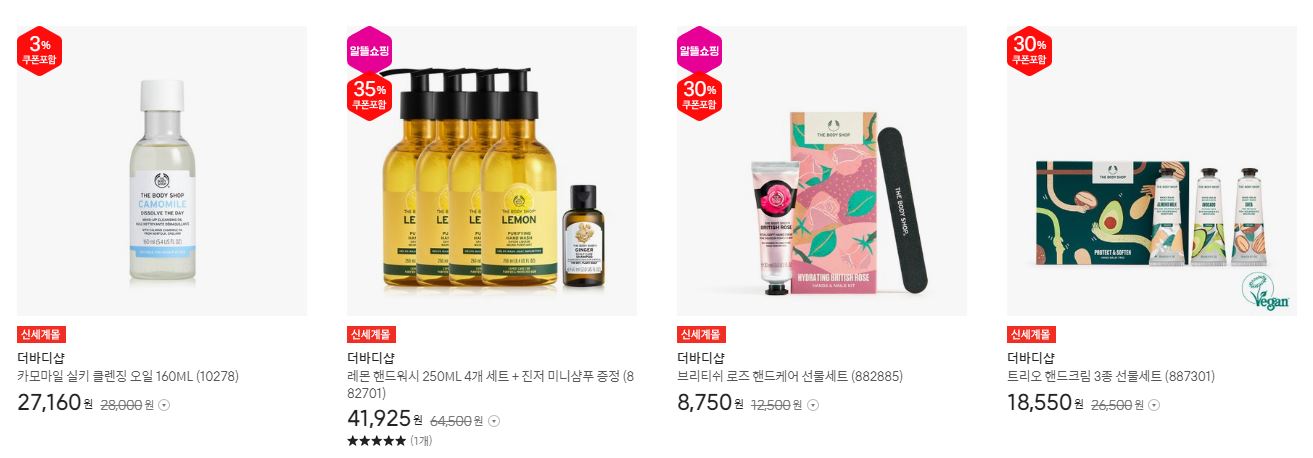 더바디샵 다양한 제품을 할인 판매하네요.