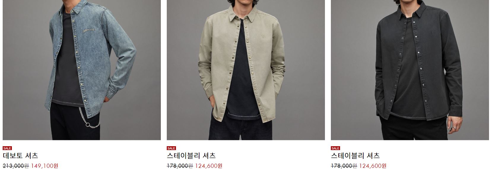 할인 품목 : 티셔츠, 셔츠, 팬츠 등