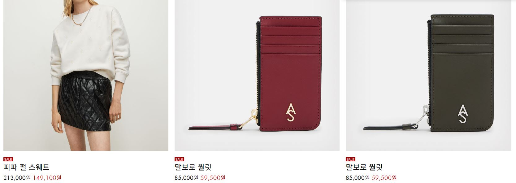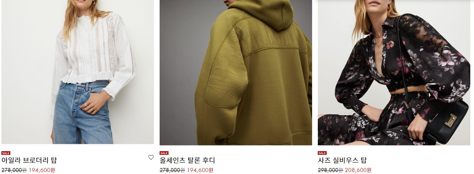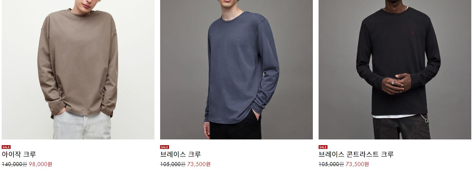 할인 품목 : 티셔츠, 셔츠, 팬츠 등