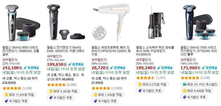 필립스 다양한 제품을 할인 판매하네요.