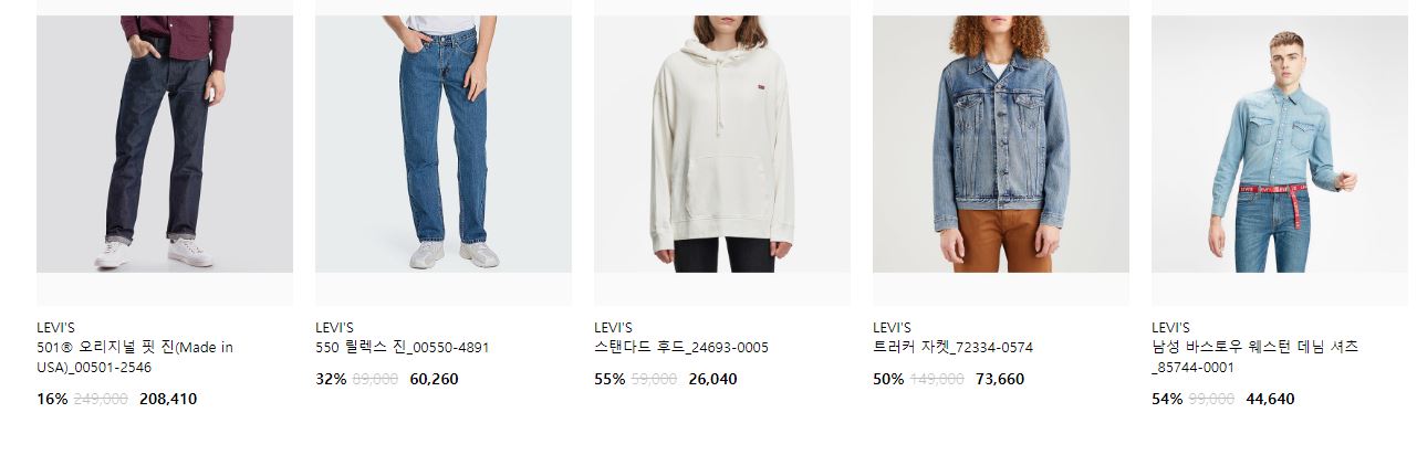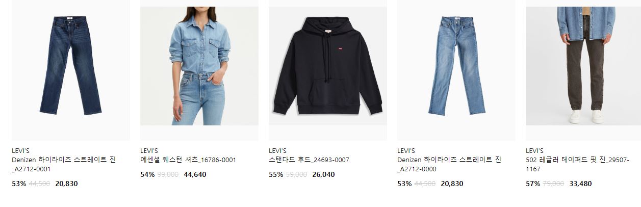 할인 품목 : 팬츠, 후드티, 셔츠 등