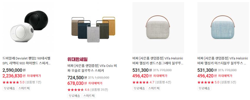 할인 품목 : 이어폰, 스피커, 엠프 등