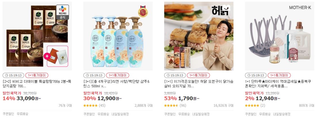 위메프 사이트에서 1+1 이벤트를 진행하네요.
